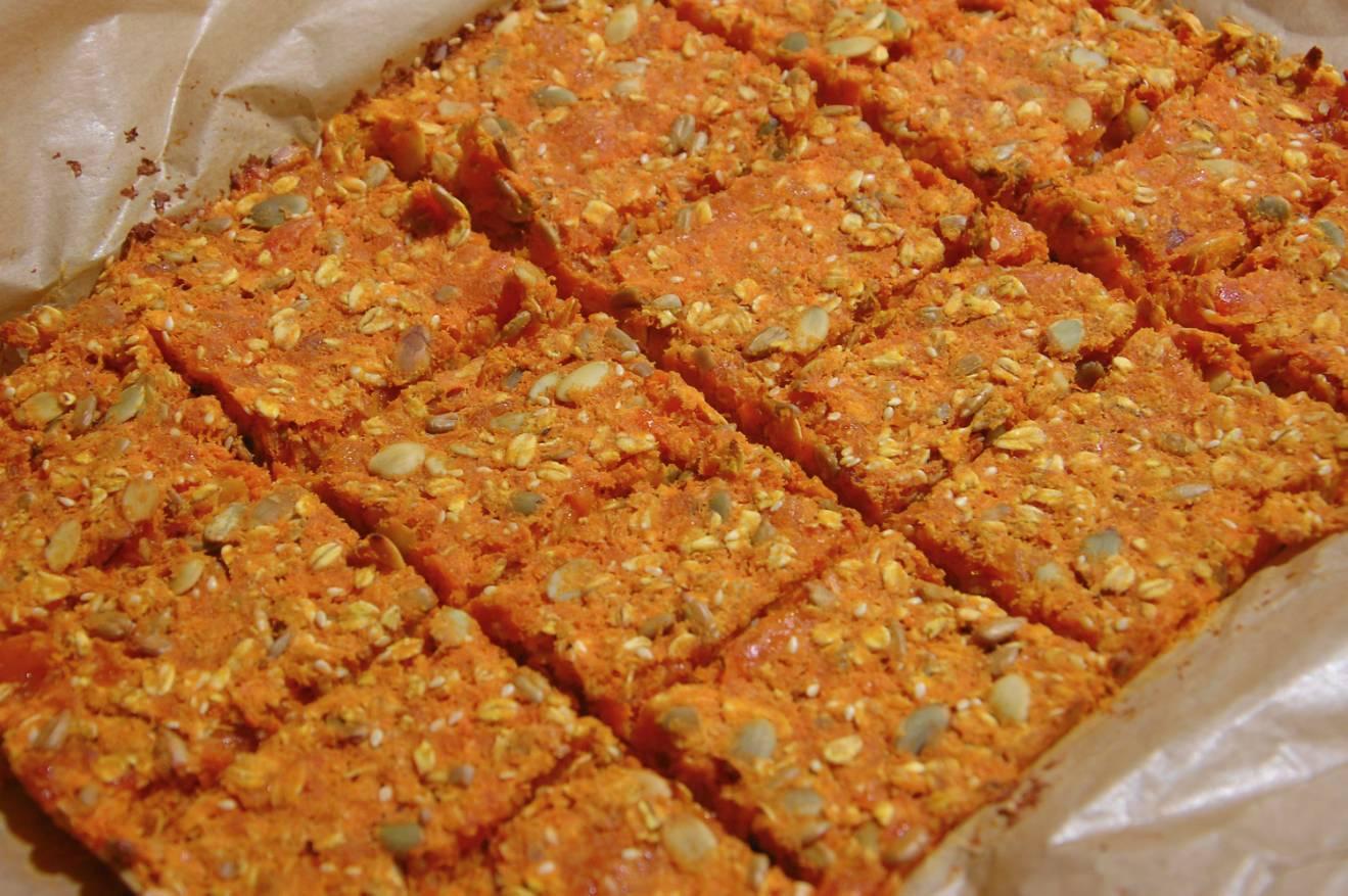 Смешайте морковь с цедрой и курагой. Добавьте овсяные хлопья, тыквенные семечки, семена кунжута, кардамон и остальные ингредиенты. Тщательно перемешайте.