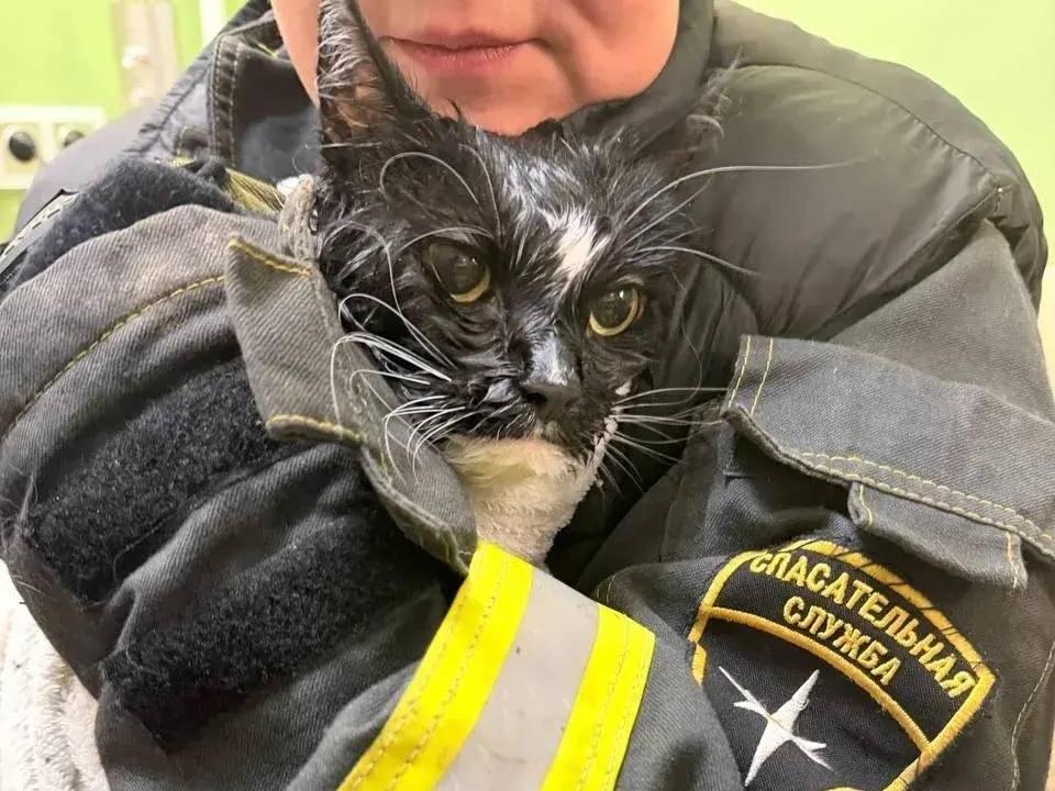 «По дороге позвонили хозяйке. Велели открыть отсек для порошка, чтобы поступал воздух, и вытащить клапан слива внизу машинки. Благодаря этому уровень воды снизился, и кот смог дышать», — спасатели общественного поисково-спасательного отряда «СпасРезерв».